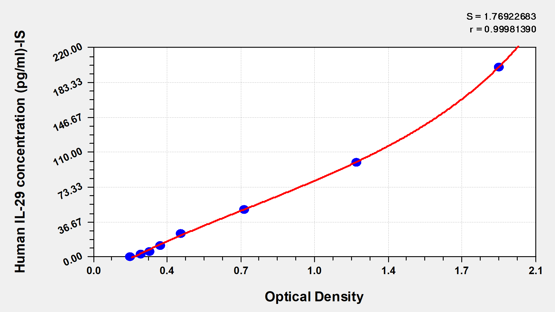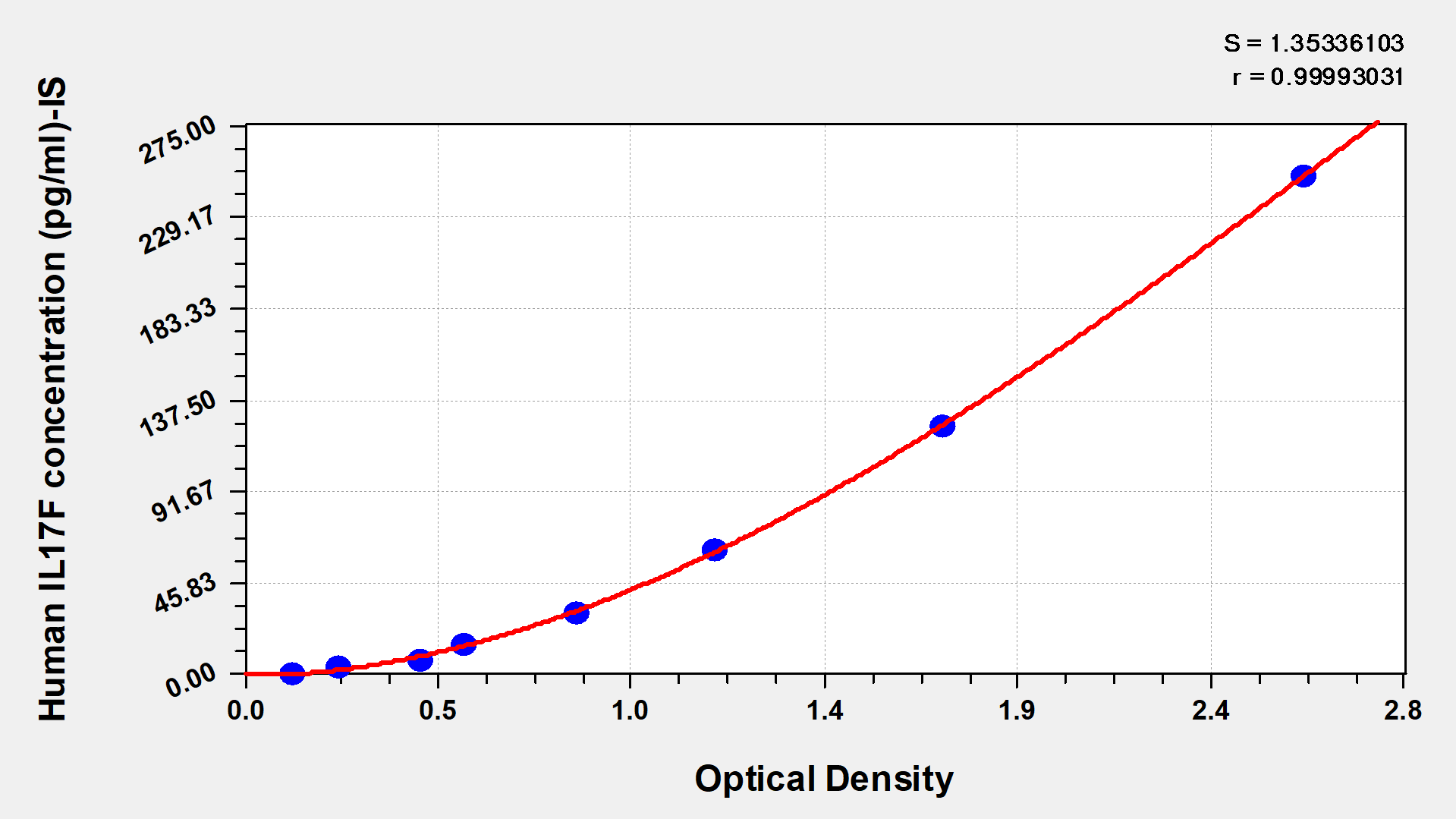最低檢測限是靈敏度的測試指標。由使用的抗體效價等決定的,在研發過程中,一般會優化保證高靈敏度、低背景的檢測結果從而大大提高試劑盒的靈敏度。檢測限越低,靈敏度越高。通過將零標準重復獲得的平均 O.D. 加上3個標準偏差來確定靈敏度。