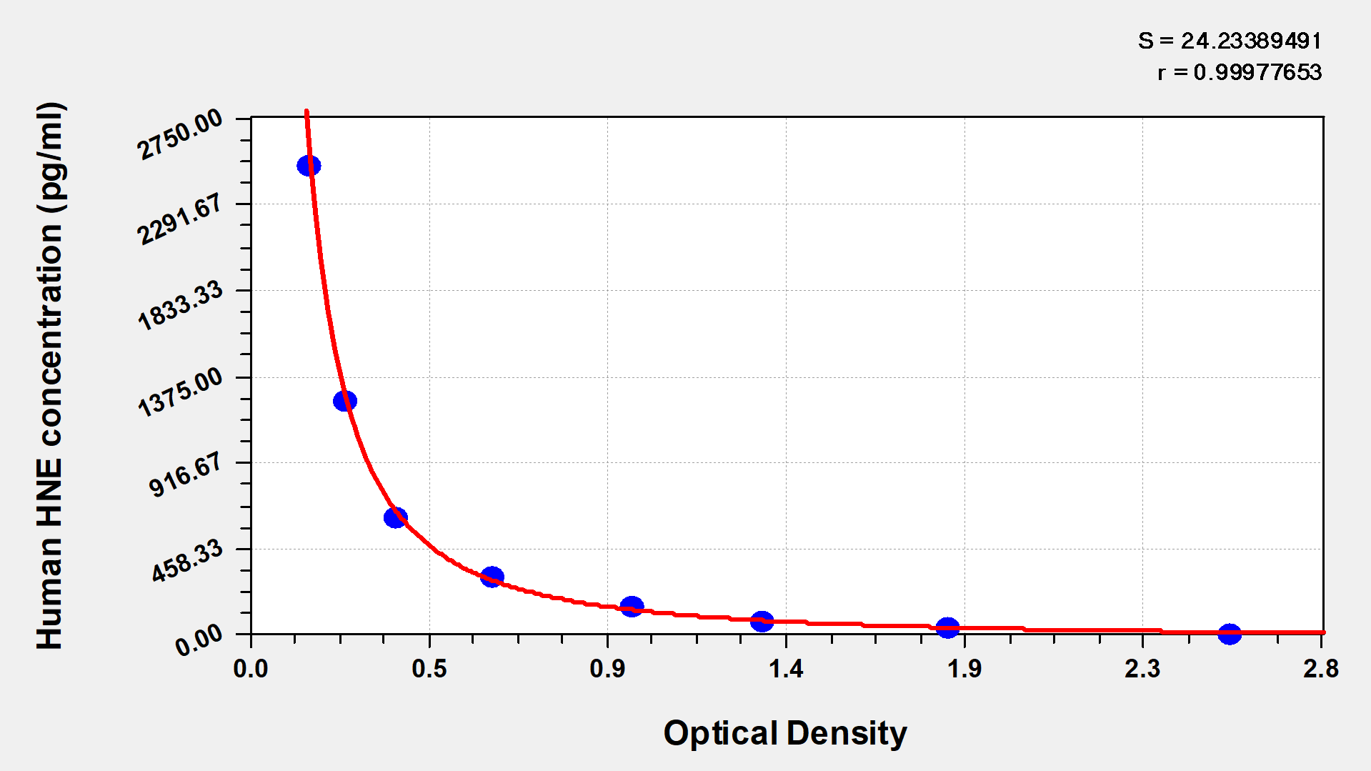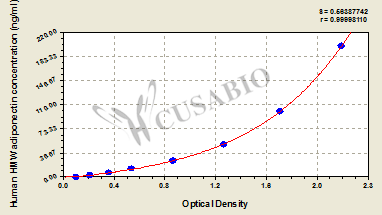 通過(guò)線性范圍來(lái)計(jì)算出實(shí)際的檢測(cè)樣本值,定量試劑盒標(biāo)準(zhǔn)曲線的相關(guān)系數(shù)R大于0.99。以CSB-E07270h(人脂聯(lián)素(ADP)ELISA Kit)為例的標(biāo)準(zhǔn)曲線。