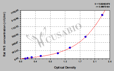 通過(guò)線性范圍來(lái)計(jì)算出實(shí)際的檢測(cè)樣本值,定量試劑盒標(biāo)準(zhǔn)曲線的相關(guān)系數(shù)R大于0.99。以CSB-E07270h(人脂聯(lián)素(ADP)ELISA Kit)為例的標(biāo)準(zhǔn)曲線。