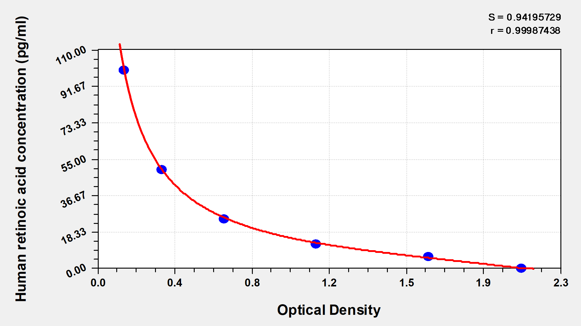 通過線性范圍來計算出實際的檢測樣本值,定量試劑盒標準曲線的相關系數R大于0.99。以CSB-E07270h(人脂聯素(ADP)ELISA Kit)為例的標準曲線。