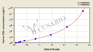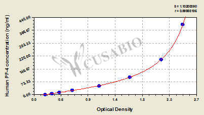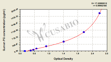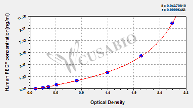 通過線性范圍來計算出實際的檢測樣本值,定量試劑盒標準曲線的相關系數(shù)R大于0.99。以CSB-E07270h(人脂聯(lián)素(ADP)ELISA Kit)為例的標準曲線。