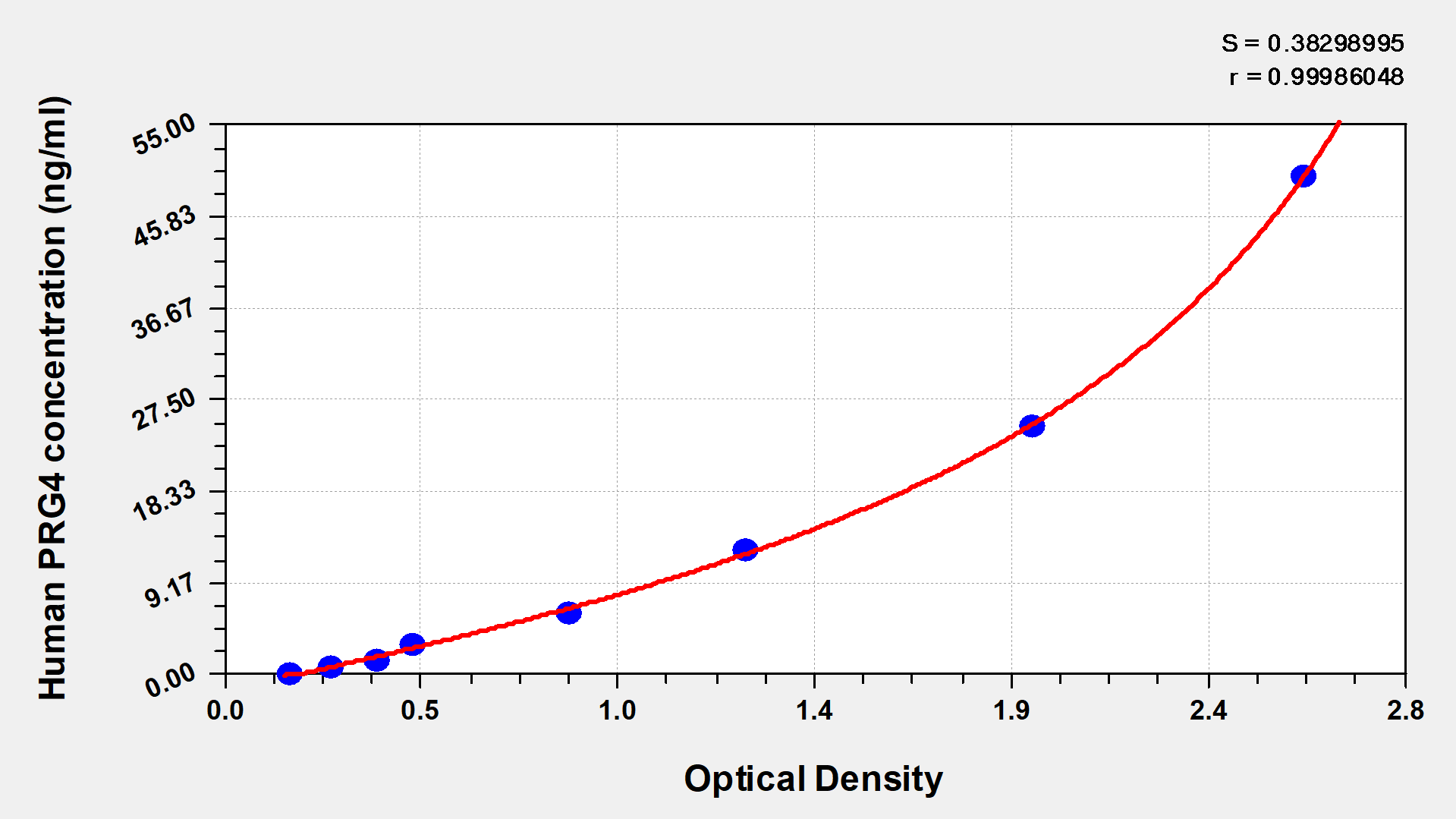 通過線性范圍來計算出實際的檢測樣本值,定量試劑盒標準曲線的相關系數R大于0.99。以CSB-E07270h(人脂聯素(ADP)ELISA Kit)為例的標準曲線。