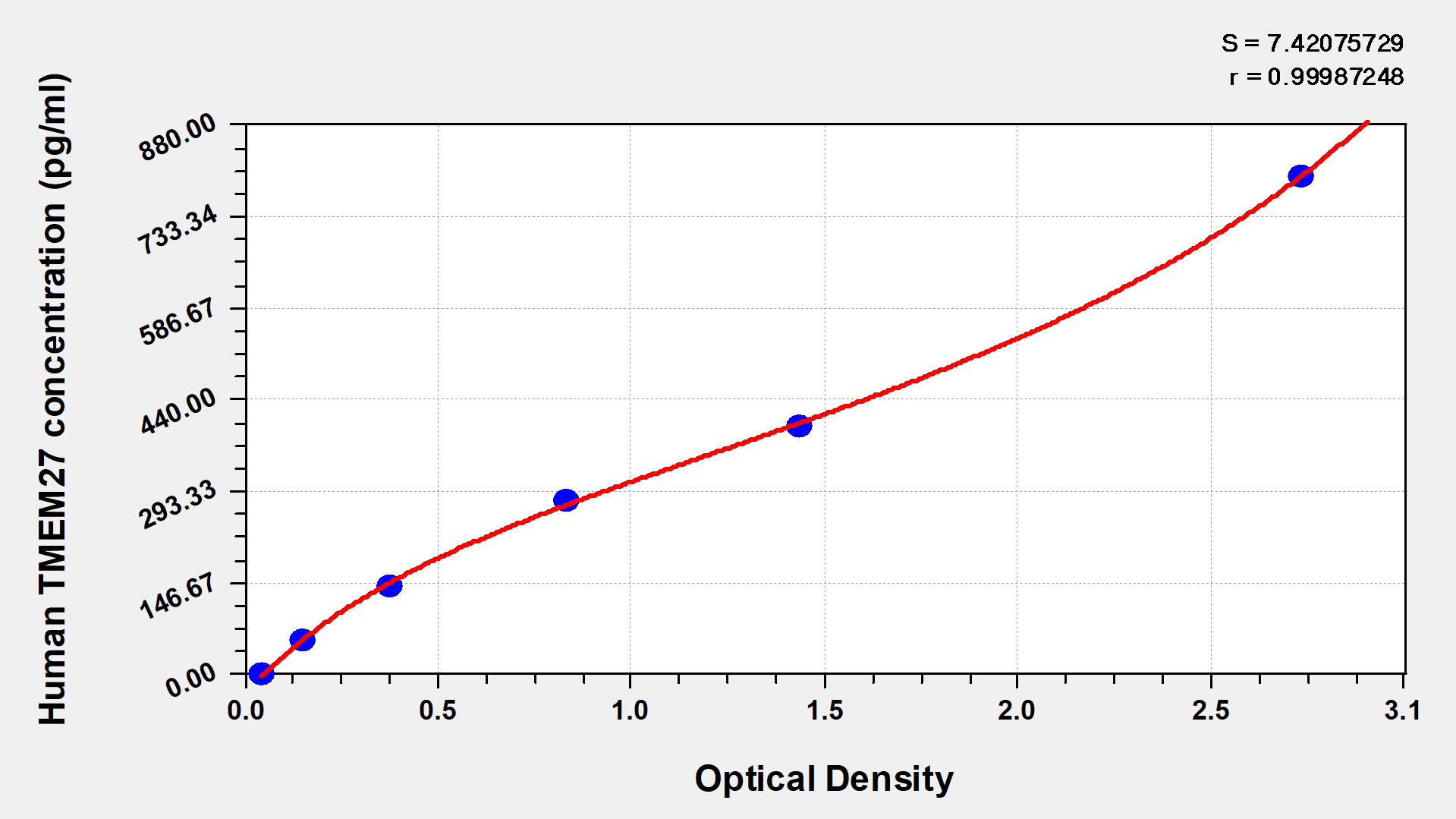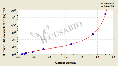 通過線性范圍來計算出實際的檢測樣本值,定量試劑盒標準曲線的相關系數R大于0.99。以CSB-E07270h(人脂聯素(ADP)ELISA Kit)為例的標準曲線。