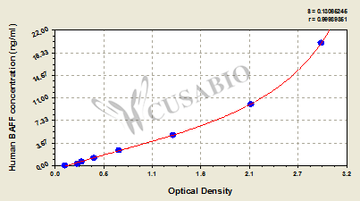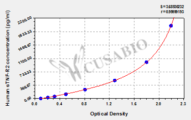通過線性范圍來計算出實際的檢測樣本值,定量試劑盒標準曲線的相關系數R大于0.99。以CSB-E07270h(人脂聯素(ADP)ELISA Kit)為例的標準曲線。
