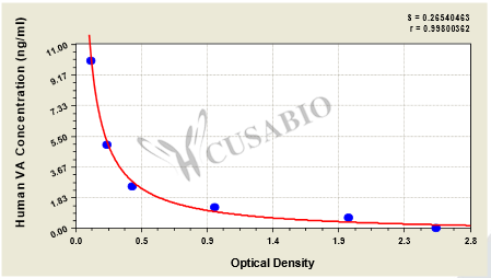 通過(guò)線性范圍來(lái)計(jì)算出實(shí)際的檢測(cè)樣本值,定量試劑盒標(biāo)準(zhǔn)曲線的相關(guān)系數(shù)R大于0.99。以CSB-E07270h(人脂聯(lián)素(ADP)ELISA Kit)為例的標(biāo)準(zhǔn)曲線。