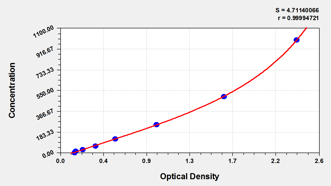通過(guò)線性范圍來(lái)計(jì)算出實(shí)際的檢測(cè)樣本值,定量試劑盒標(biāo)準(zhǔn)曲線的相關(guān)系數(shù)R大于0.99。以CSB-E07270h(人脂聯(lián)素(ADP)ELISA Kit)為例的標(biāo)準(zhǔn)曲線。