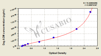 通過線性范圍來計算出實際的檢測樣本值,定量試劑盒標準曲線的相關系數R大于0.99。以CSB-E07270h(人脂聯素(ADP)ELISA Kit)為例的標準曲線。