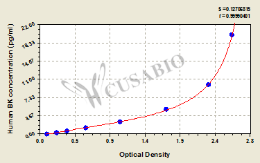 通過線性范圍來計算出實際的檢測樣本值,定量試劑盒標準曲線的相關系數R大于0.99。以CSB-E07270h(人脂聯素(ADP)ELISA Kit)為例的標準曲線。