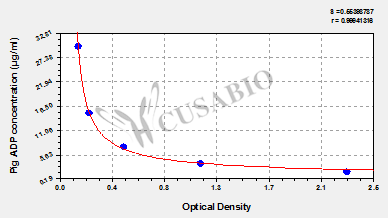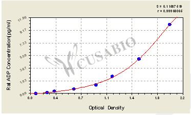 通過線性范圍來計(jì)算出實(shí)際的檢測(cè)樣本值,定量試劑盒標(biāo)準(zhǔn)曲線的相關(guān)系數(shù)R大于0.99。以CSB-E07270h(人脂聯(lián)素(ADP)ELISA Kit)為例的標(biāo)準(zhǔn)曲線。