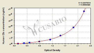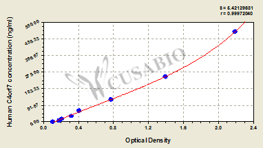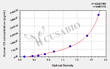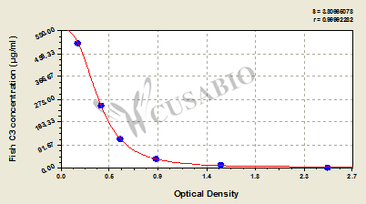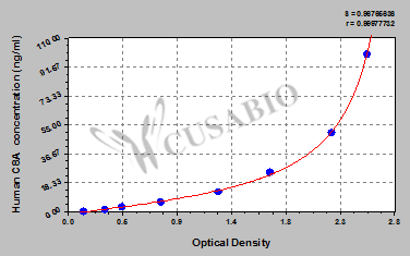 通過線性范圍來計算出實際的檢測樣本值,定量試劑盒標準曲線的相關系數R大于0.99。以CSB-E07270h(人脂聯素(ADP)ELISA Kit)為例的標準曲線。