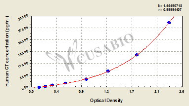 通過線性范圍來計算出實際的檢測樣本值,定量試劑盒標準曲線的相關系數R大于0.99。以CSB-E07270h(人脂聯素(ADP)ELISA Kit)為例的標準曲線。