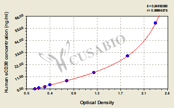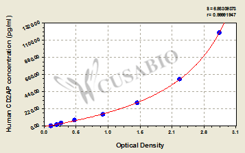 通過線性范圍來計算出實際的檢測樣本值,定量試劑盒標準曲線的相關(guān)系數(shù)R大于0.99。以CSB-E07270h(人脂聯(lián)素(ADP)ELISA Kit)為例的標準曲線。