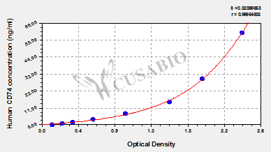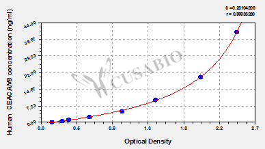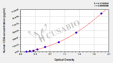 通過線性范圍來計算出實際的檢測樣本值,定量試劑盒標(biāo)準(zhǔn)曲線的相關(guān)系數(shù)R大于0.99。以CSB-E07270h(人脂聯(lián)素(ADP)ELISA Kit)為例的標(biāo)準(zhǔn)曲線。