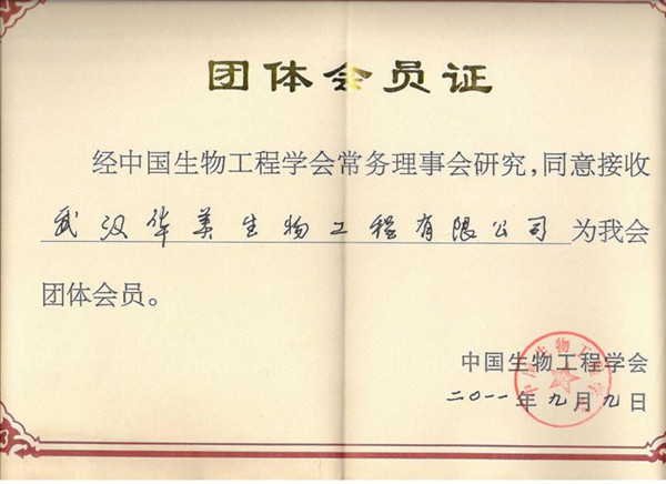 2011年9月9日,經(jīng)中國生物工程學(xué)會(huì)常務(wù)理事會(huì)研究,同意武漢華美生物工程有限公司成為中國生物工程學(xué)會(huì)團(tuán)體會(huì)員。 中國生物工程學(xué)會(huì)(Chinese Society of Biotechnology,CSBT)成立于1993年6月,是我國從...