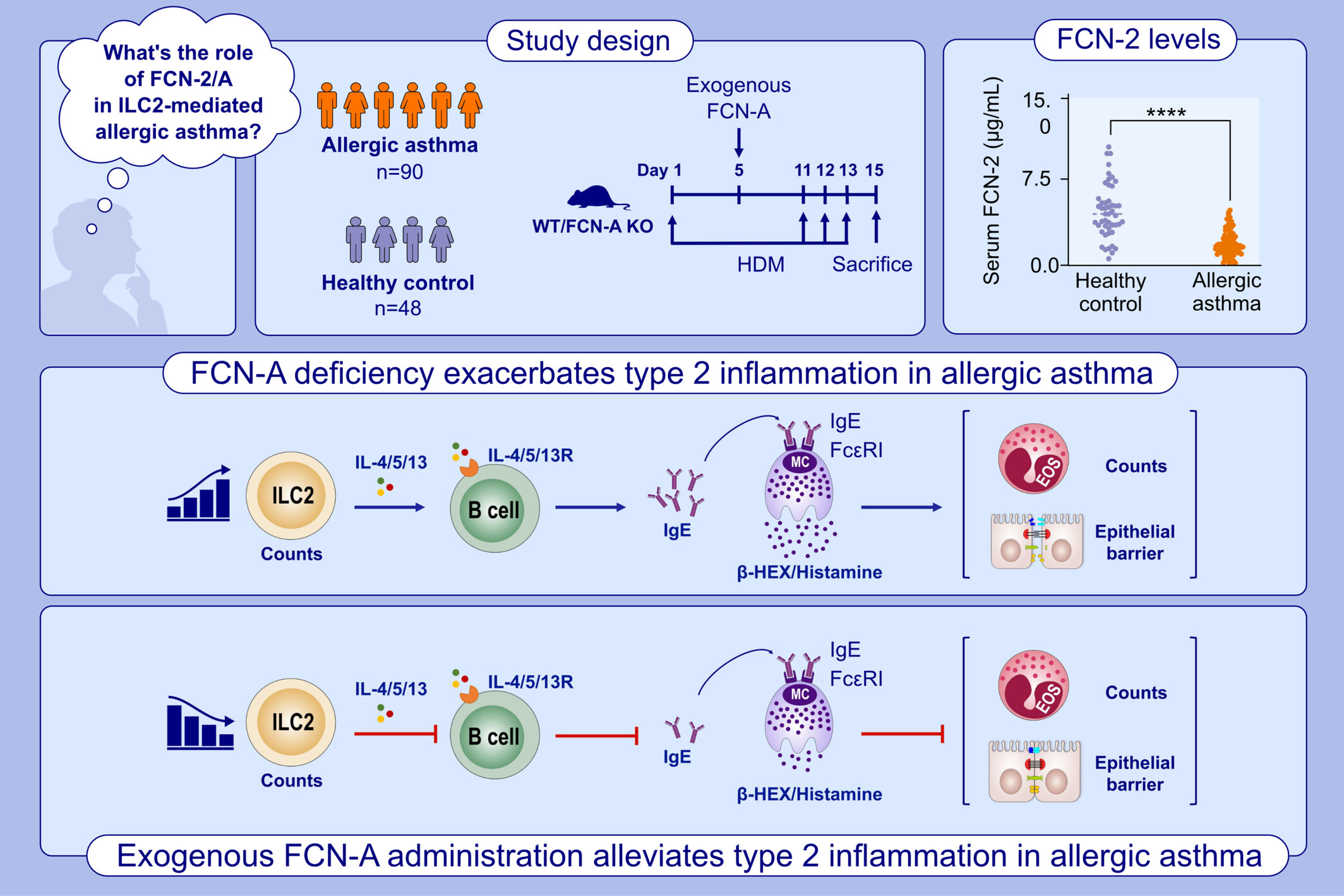 來源:Ficolin-A Protects Against Allergic Asthma via Suppressing ILC2-Drived Type 2 Inflammation.Allergy,2025 Jul 25
