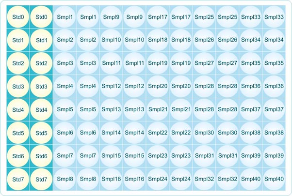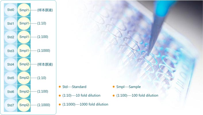 4、預實驗確定樣本合適的稀釋倍數,下面進行正式實驗,排版如下,注意做好標識,正式實驗操作步驟請參考相應的說明書。